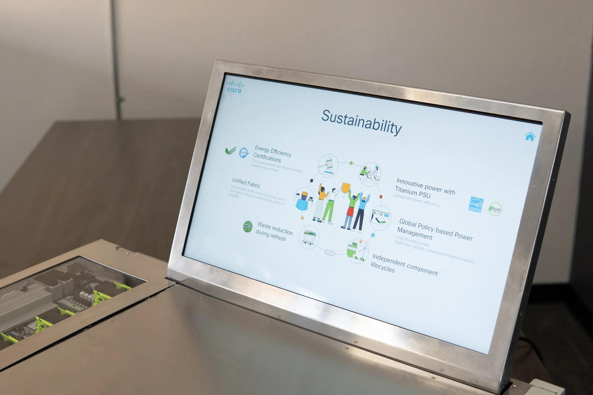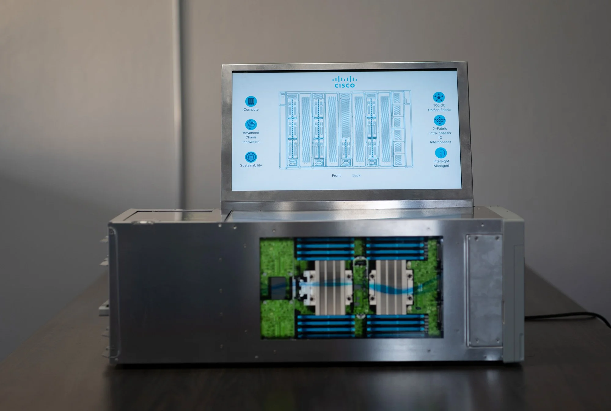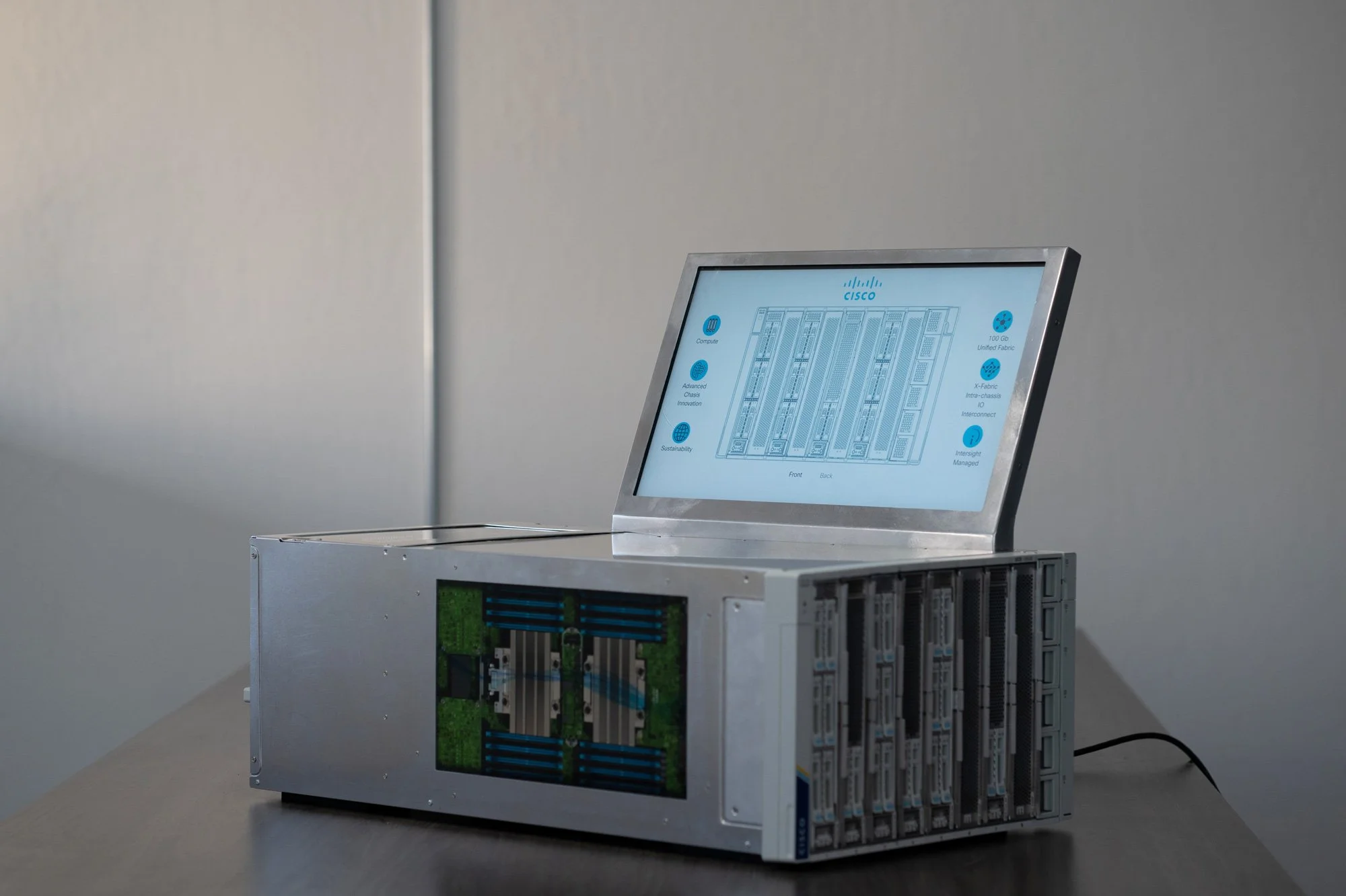 Cisco's UCS X-Series networking system promised to be the next generation of computing. However, their product's power, innovation, and versatility were challenging to convey at tradeshow or presentation events due to portability issues and space limitations. In order to get the most out of their marketing, sales, and networking efforts, Cisco would need a scaled-down model equipped with demonstration features and compelling UX and UI.